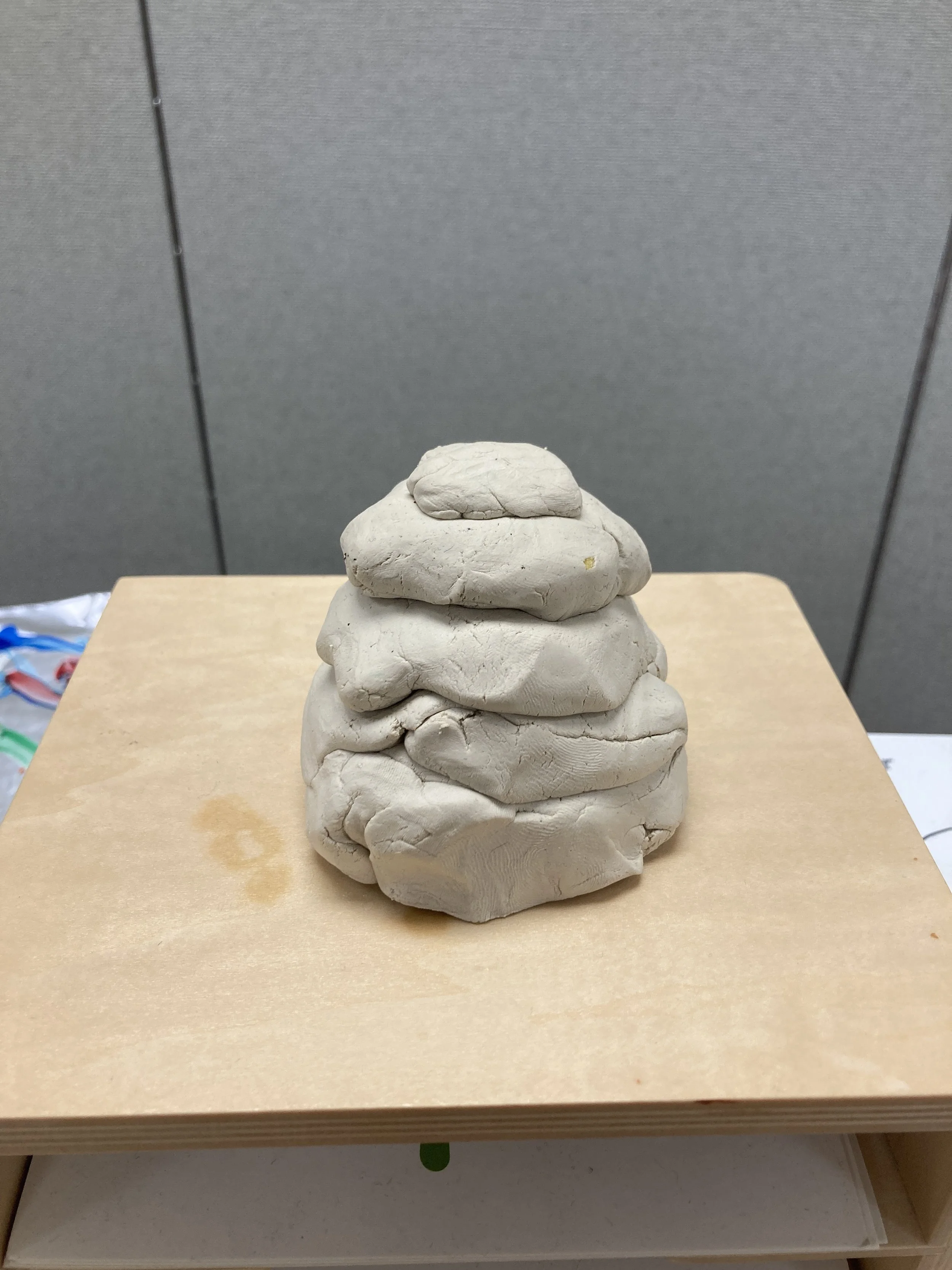 The following session, clay was presented a little differently. Instead of dividing the clay up, I presented the clay in solid blocks straight out of the box. Clay tools were provided. The children worked together to get the clay off the block.