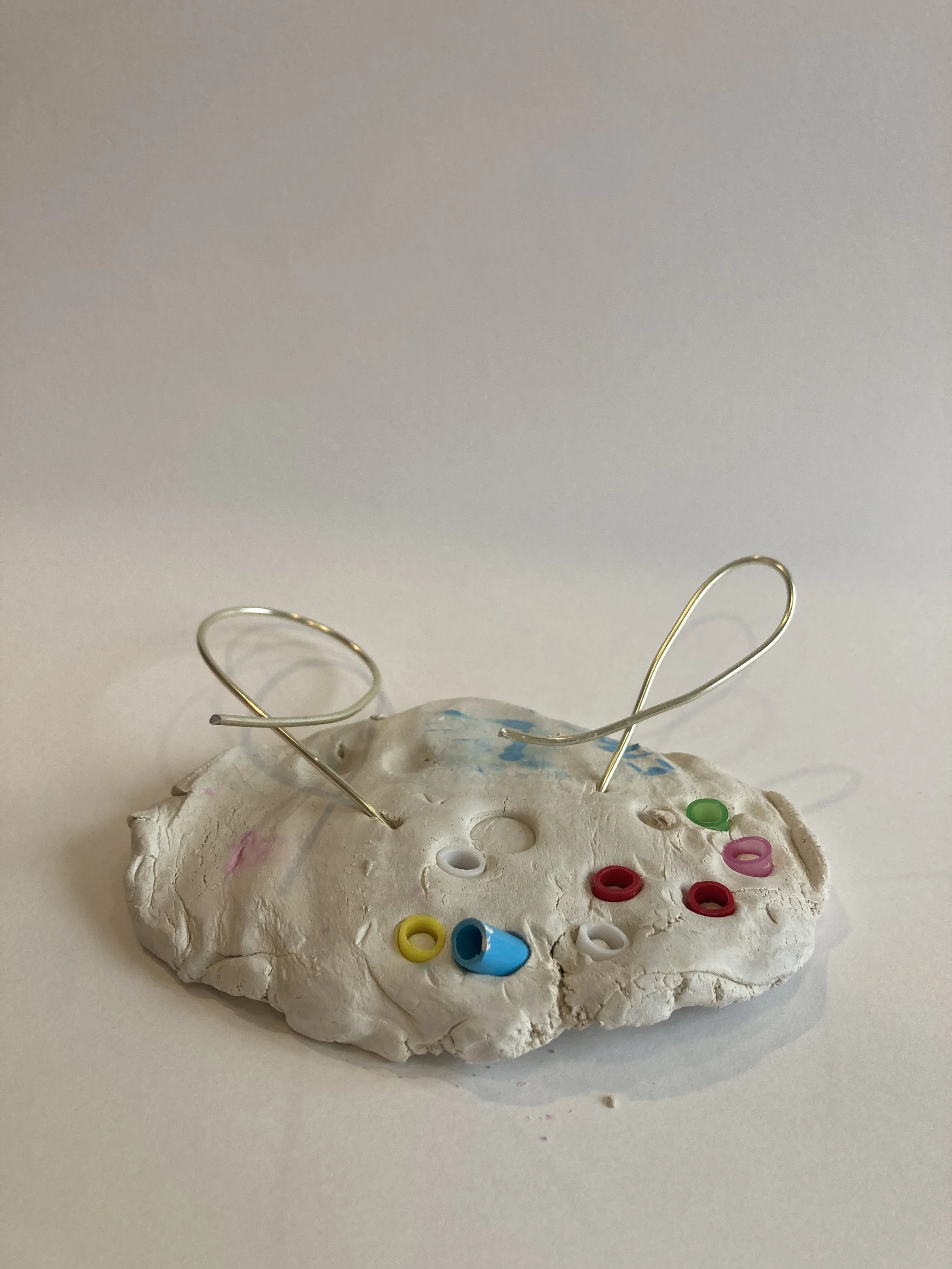 In our final session, clay spheres were presented with wire and wooden beads. I noticed that the children were becoming more intentional with how they used the clay. Many children shaped the clay sphere into a base before attaching wire and beads to it. Some even added cut out clay shapes to the base.